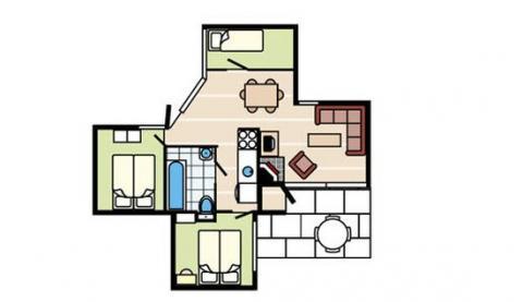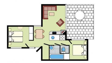 kitchenette Magnetron woon/slaapkamer 2-pers. bed TV Open haard badkamer Bad of douche Wastafel Toilet Algemeen Hal Balkon of terras Verwarming (CV) Tuinmeubilair Zwembad (gedeeld met andere gasten) Zwembad (gedeeld met andere gasten, overdekt)