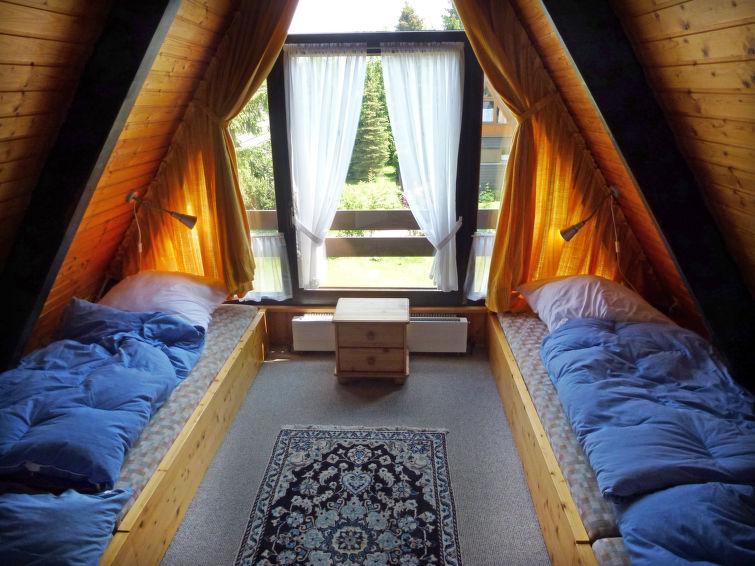 Huis / de residence100 km aan wandel- en hikingpaden, langlaufloipen vanaf het vakantiedorp. Beginners skilift en rodelbaan ligt op 300 m. Het vakantiedorp is gelegen aan de zonzijde van een 800 m hoog plateau in het Zwarte Woud en is verkeersluw. Centrale parkeerplaatsen in de nabijheid van de vakantiehuizen. De zadeldakhuizen en "Nurdach" huizen (huizen waarvan het dak tot aan de grond reikt) zijn alle naar de persoonlijke smaak van de eigenaar ingericht. In de vakantieperiode: kinderopvang per uur in "Bähnle", een tot Kids-Club omgebouwde treinwagon met locomotief. Onderaan het vakantiedorp bevindt zich een groot openbaar openluchtzwembad (een van de mooiste verwarmde buitenzwembaden in Duitsland, extra) inclusief reuzenglijbaan, sauna en solarium. Let op: geen aankomst op zon- en feestdagen. Vakantiedorp "Tennenbronn". Boven Tennenbronn, 1 km van het centrum. Voor medegebruik: tennisbaan (extra), tafeltennis (extra), kinderspeelplaats. In het complex: receptie, restaurant, wasmachine, droger (voor medegebruik, extra). Centrale parkeerplaatsen. Levensmiddelenwinkel 2 km, bushalte 500 m, station "St. Georgen" 10 km, openluchtzwembad 500 m, overdekt zwembad 10 km. Golfterrein (18 holes) 15 km, wandelroutes 100 m vanaf het huis, skilift 20 km, langlaufloipe 100 m. Let op: De afgebeelde foto is slechts een voorbeeld. De woningen kunnen onderling van inrichting verschillen.