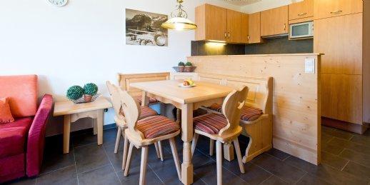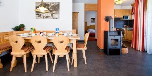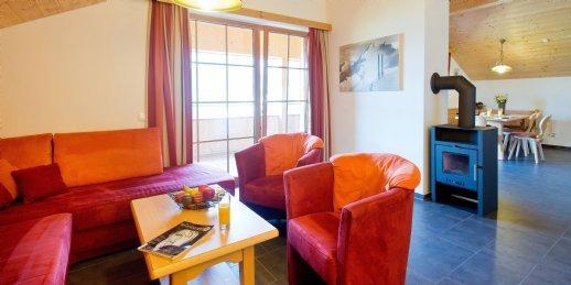 Comfortabele appartementen. Woonkamer met zit- en eethoek, vloerverwarming, tv en houtkachel (een aantal met gelhaarden). Open keuken met magnetron, oven en afwasmachine. Balkon of terras. Een gemeenschappelijke skikelder per appartementengebouw. De appartementen liggen op drie etages en zijn door middel van een trappenhuis met elkaar verbonden (een lift is enkel in het hoofdgebouw). Een parkeerplaats in de garage per appartement.