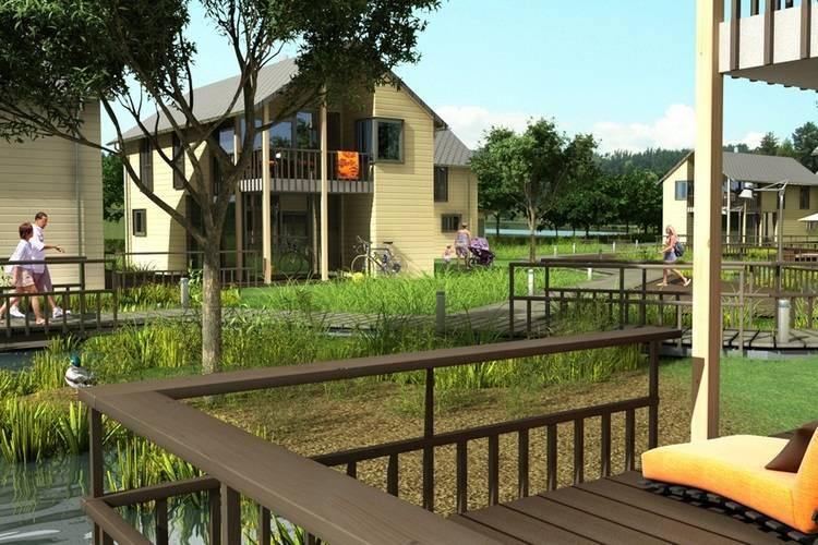 Domaine Golden Lakes Villages is een autovrijpark, waar de wegen zijn vervangen door pittoreske houten straatjes en bruggetjes over de vele waterpartijen met fonteinen. De vrijstaande villa's zijn rondom de waterpartijen gebouwd, waardoor een sfeer van ontspanning en rust wordt gecreëerd.