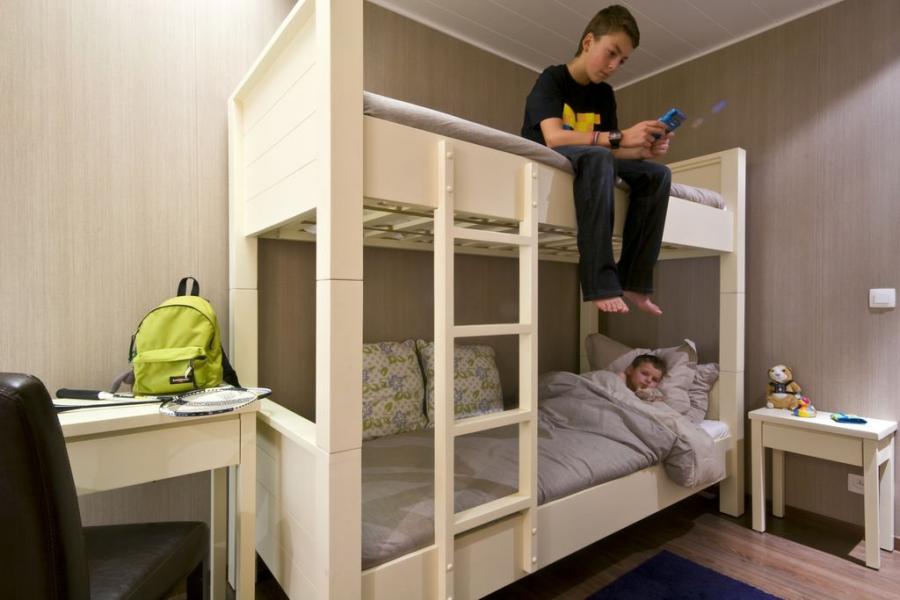 Parterre Hal toilet Open keuken fornuis (keramisch) magnetron afwasmachine koel-/vriescombinatie Woon/eetkamer TV open haard Slaapkamer met badkamer 2-pers. bed of 2x1 pers. Bedden bad of douche wastafel Berging Op de 1e etage Slaapkamer 2x 1-pers. bed Slaapkamer stapelbed Slaapkamer met badkamer 2-pers. bed ligbad wastafel balkon Badkamer douche wastafel Overloop toilet Algemeen Sauna Terras Tuinmeubilair